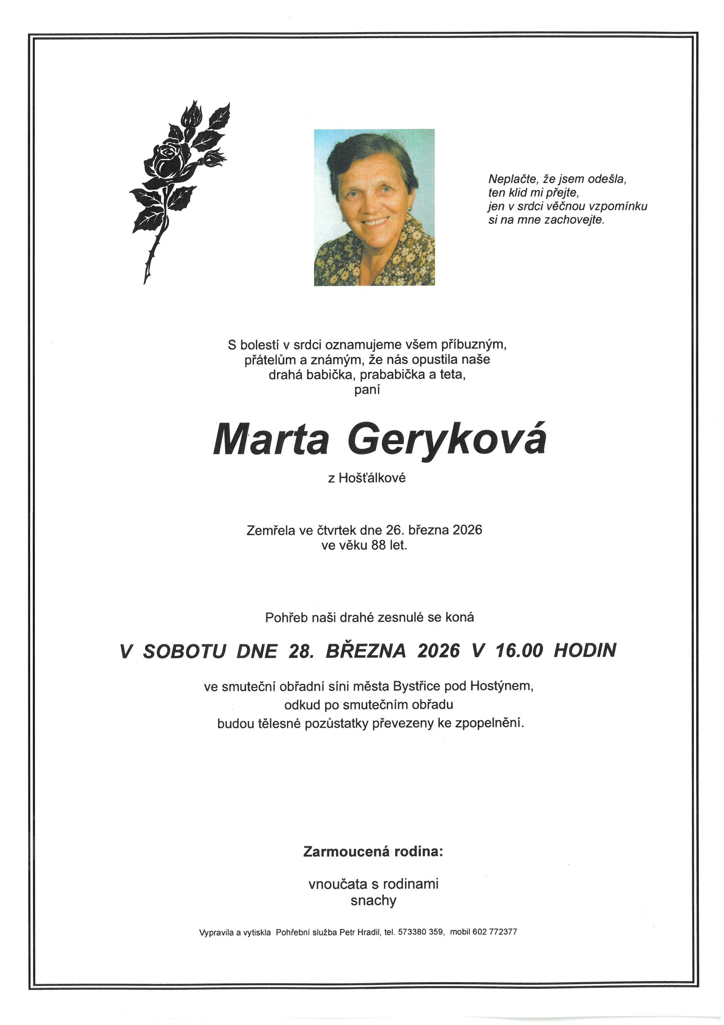 Úmrtí Marta Geryková / 88 let / bývala spoluobčanka IMG_0828 |